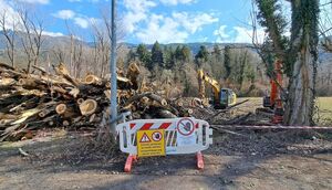 Brixen (mf). Nach der frühmorgendlichen Rodung des Auwaldes in der Brixner Industriezone am Fre...